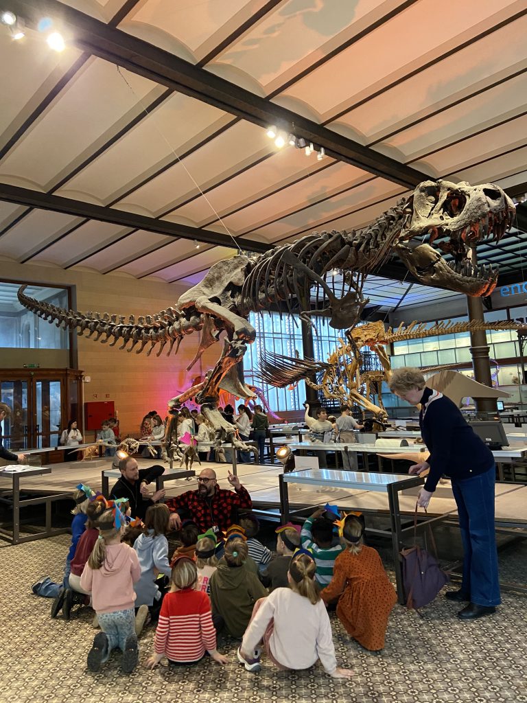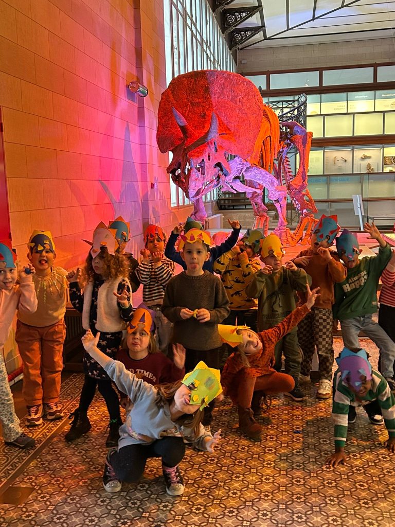 het dinomuseum!!! We trokken erop uit naar het Instituut voor Natuurwetenschappen om de galerij van de dinosauriërs te bewonderen. We namen ook deel aan een workshop wat het extra boeiend en interactief maakte. Vooraleer de trein richting school te nemen, pikten we de tentoonstelling ‘flight’ nog mee, wat ook erg in de smaak